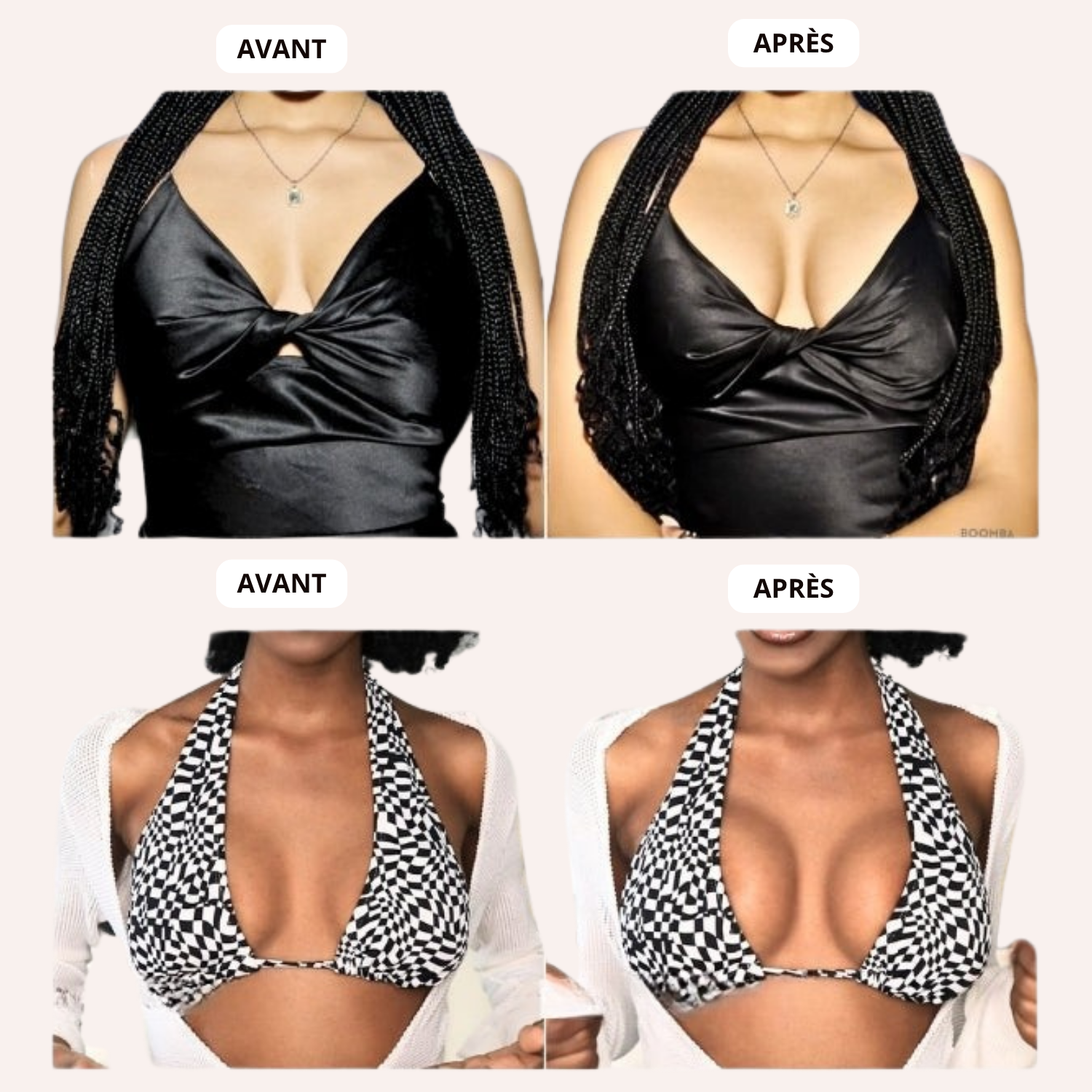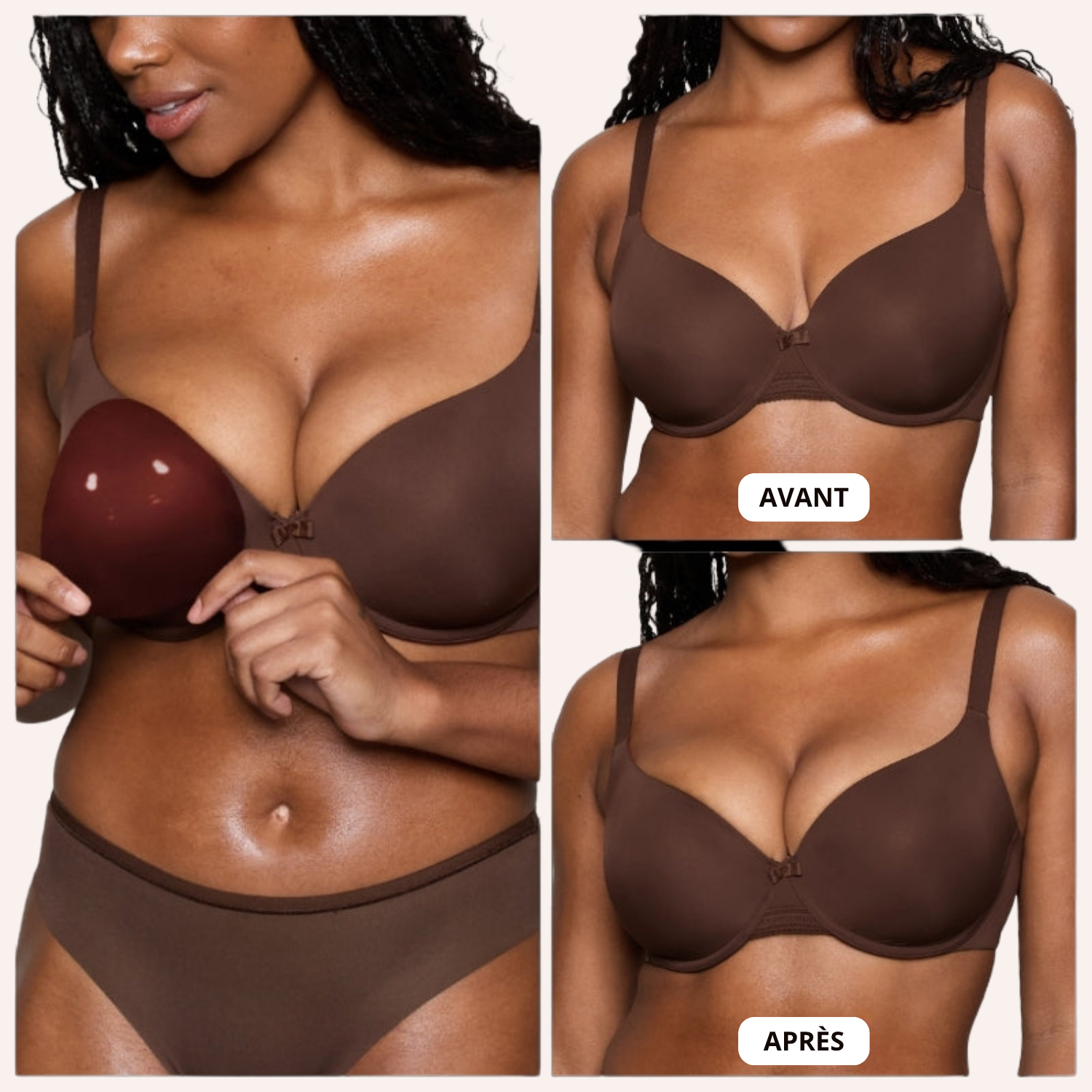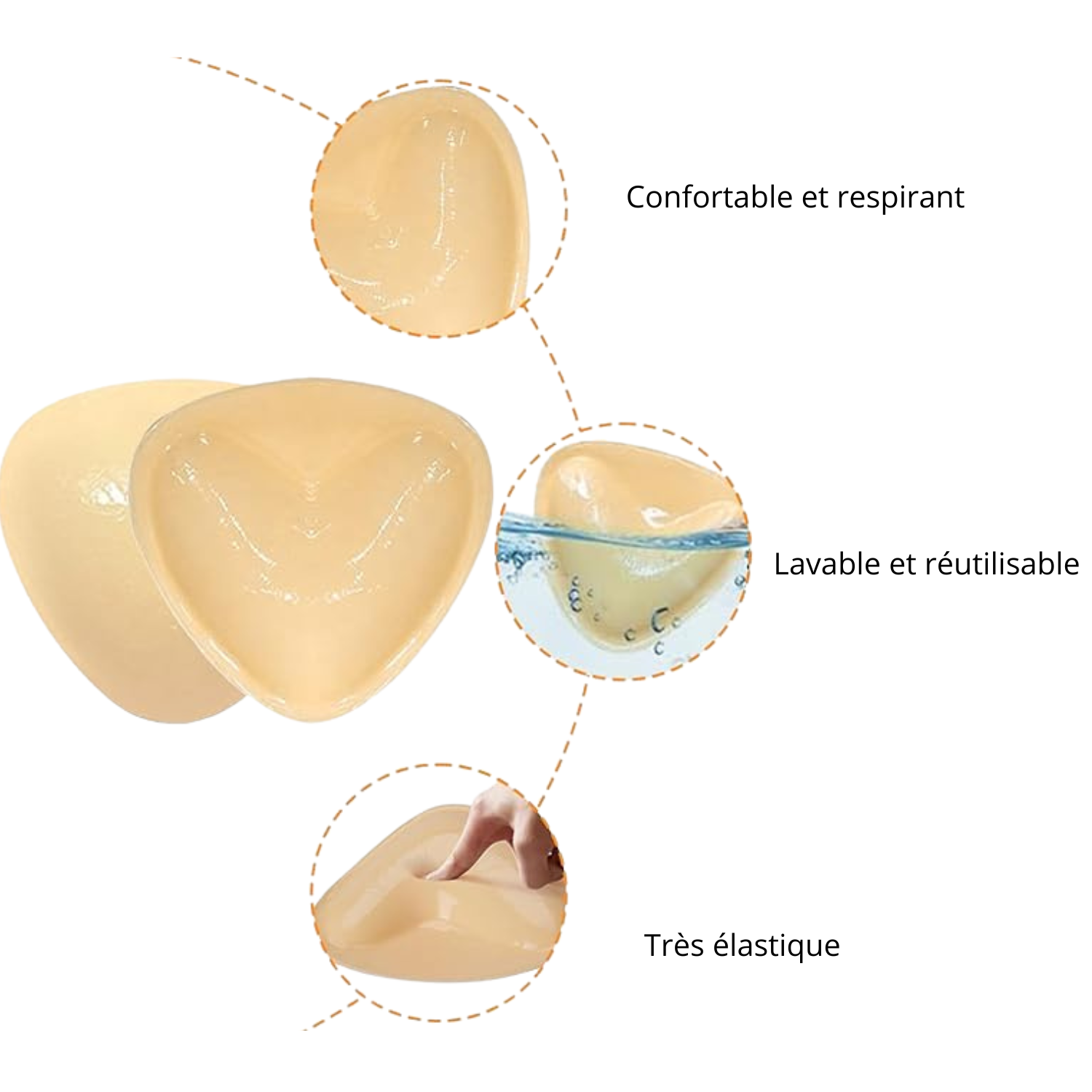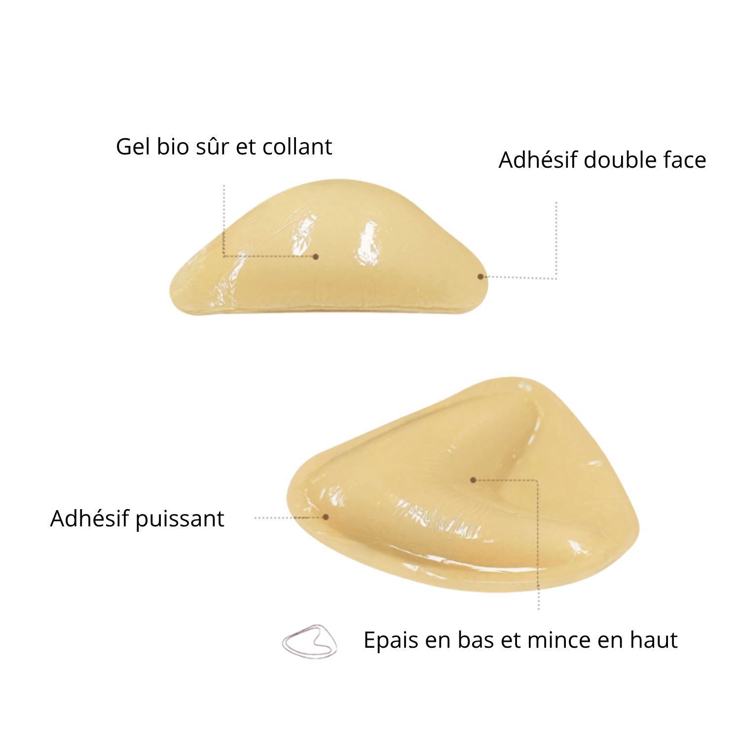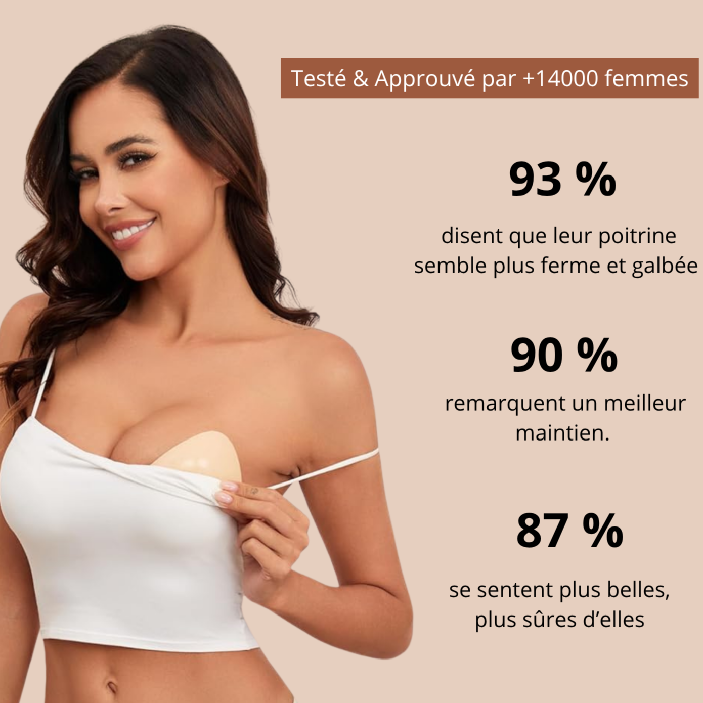 Discrètes et invisibles sous les vêtements, elles éliminent tout besoin de coutures ou d’attaches. Il vous suffit de les positionner directement sur votre peau et votre haut — pour un ajustement rapide, sécurisé et compatible avec une grande variété de tenues, des tops aux robes les plus délicates.